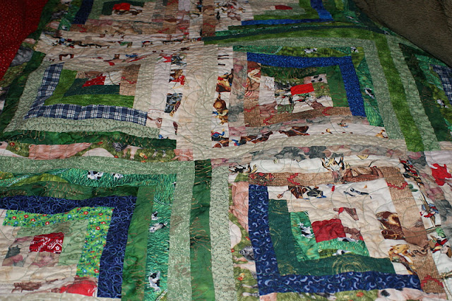 A log cabin is another wonderful choice for a first quilt. You start with a center square and then build in strips around it, either using darks and lights to create a pattern or using strips to make boxes.
