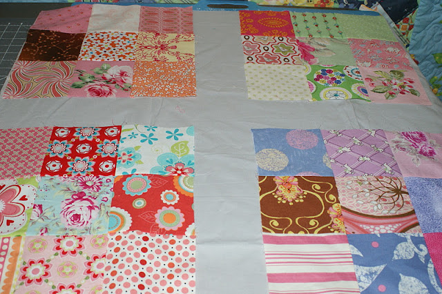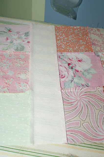 Remember that the iron is your friend. I love to use steam. If your water is perfect, use tap water. But if your water is like mine, full of calcium and rust, use bottled water to avoid leaving spots on your fabric. Some people prefer Best Press or other light starches. If you used a very light colored sash, like I did, make sure to press the seams toward the 9-patch blocks. Otherwise, the seams will show a little bit after your quilt is quilted.