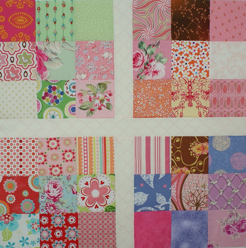 I love the look of just sewing the blocks together. But keep in mind that all those intersections will have to be matched. A sash might be better for our first quilt.
